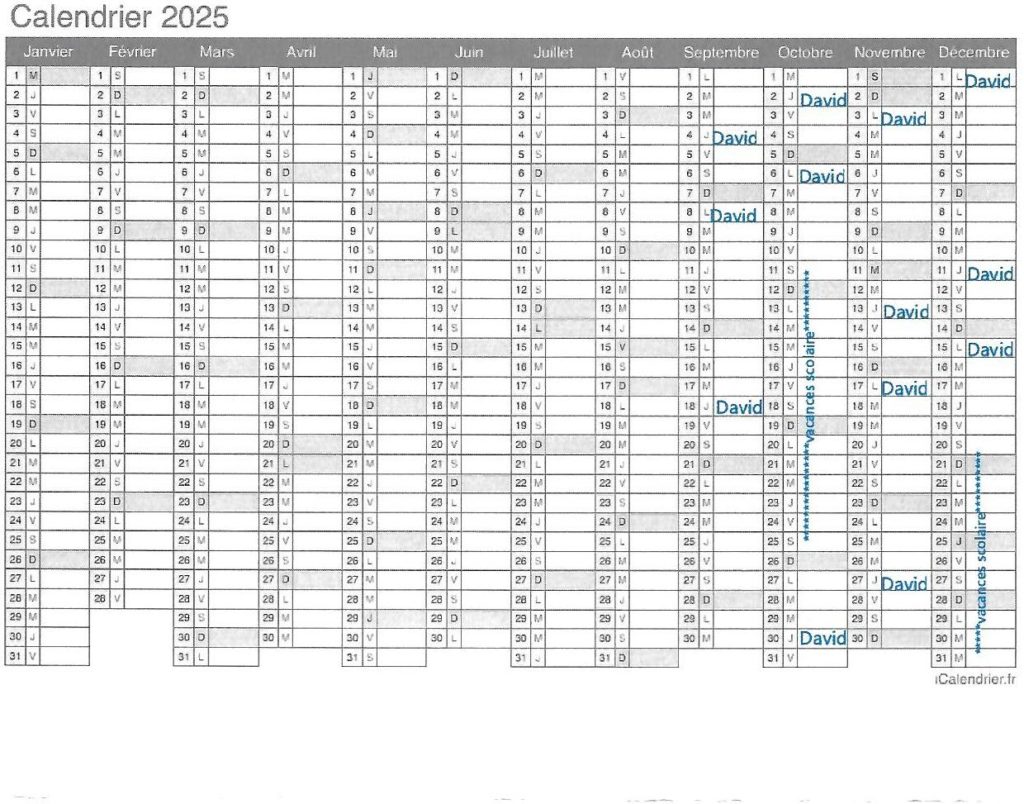 calendrier des entrainements